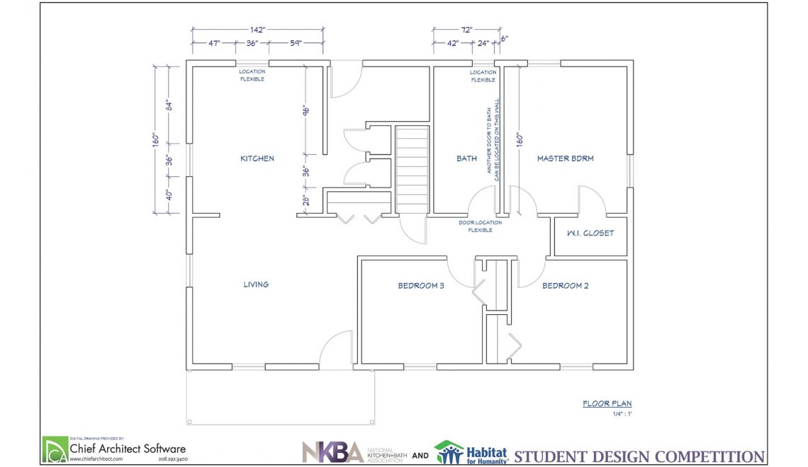 Jennifer Allen won 3rd place for her kitchen design at the 2017 NKBA Student Design Competition. Jennifer studied Computer Aided Drafting and Design at Front Range Community College and used the Chief Architect Student License to complete her design.