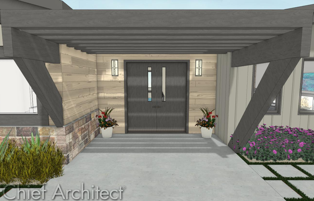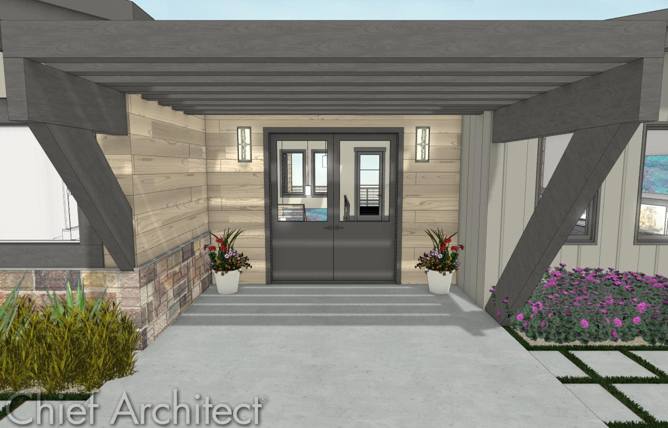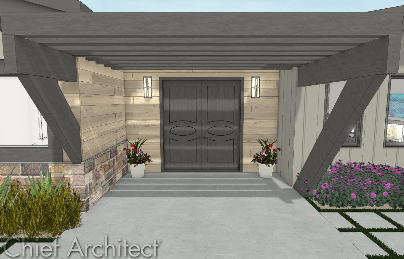 - You can update other miscellaneous items such as light fixtures, house numbers, window planter boxes, and more to add character to the front of your house. While these types of updates might be minor, the charm and attraction they can bring to your house’s front can produce a positive first impression to home buyers. These minor additions are often inexpensive and can be bought quickly at the store and installed by DIYers. In Home Designer, there are over 80,000+ library items you can use to visualize how the items fit in with the architectural design style of the front of your house. You can even import 3D objects you find online and use them in your design.