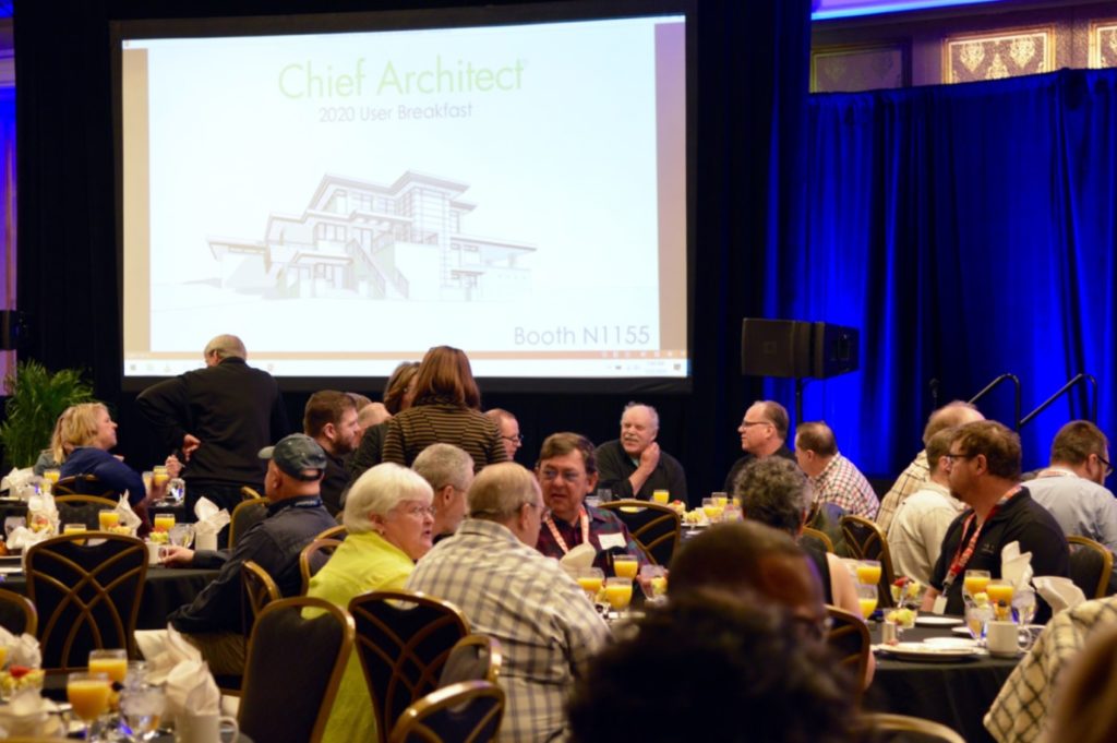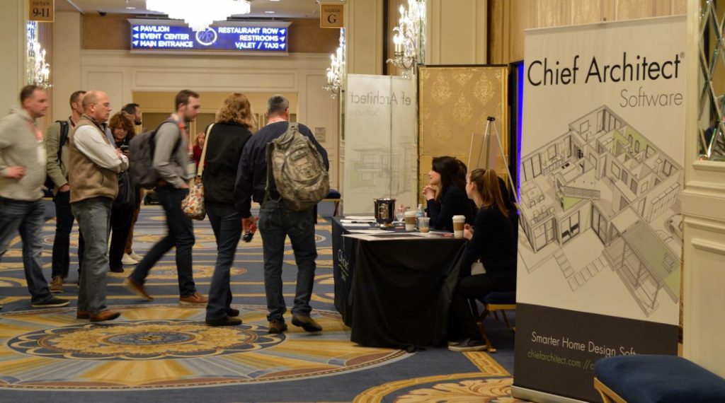 Thank you to all that were able to visit the Chief Architect Booth at the International Builders’ Show (IBS) and Kitchen and Bath Industry Show (KBIS) in Vegas. We had a great time being able to put faces to familiar names and introduce more professionals in the industry to Chief Architect Software. One of our favorite parts of the event each year is the User Breakfast that we host on Day 2 of the show. It’s here that our Vice President of Sales and Marketing, Scott Harris, CKBD, presents What’s New in the latest version of our software. In addition to showing off the new features, we also threw in a twist this year… not only did the attendees have a chance to win big at the casino, but for the first time in the history of this event, we raffled off a chance to win a ticket to our Chief Academy User Event, valued at $1,295, and Brian Farris of Farris Construction was ecstatic to win.