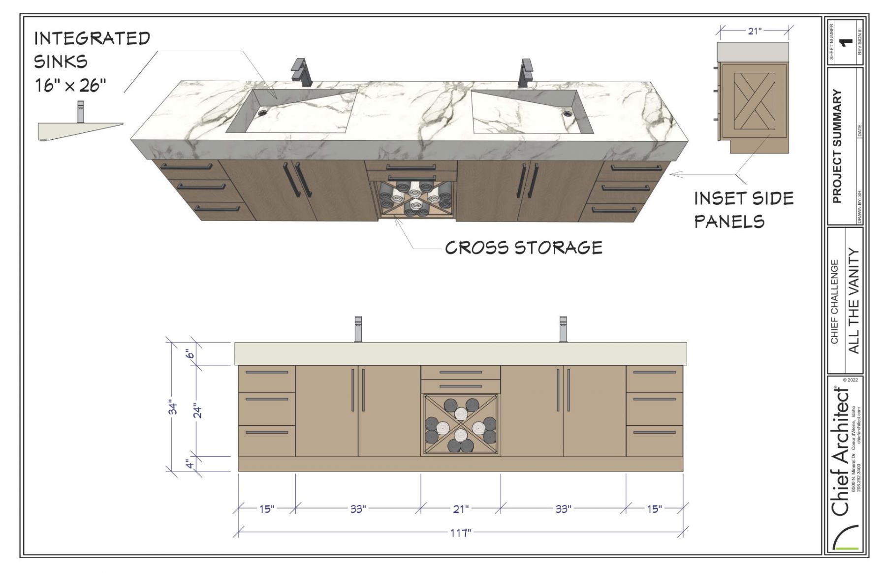 The Chief Architect Challenge is a fun exercise designed to test your skills and encourage learning. See how many design elements you can recreate in 10 minutes – a layout page is not required. We recommend starting from the default template file and spend 10 minutes on the design. If you are using a custom template, no problem, be sure to clear out your time tracker entries before beginning. Make sure to download the challenge’s library files. Chief Architect staff will judge the entries – architectural elements are more important than colors & materials.