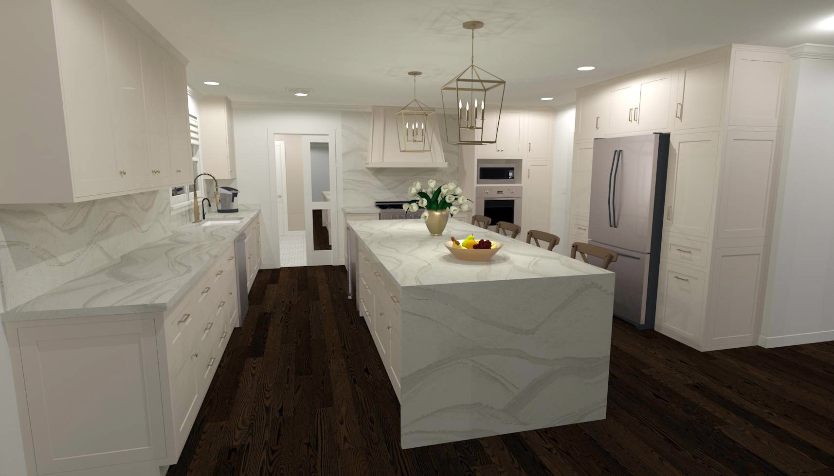 Robert’s winning design is an open concept kitchen with a metal and glass wine closet tucked conveniently beneath the staircase. According to Robert, the concept was easy, but it was a fun challenge to model and create the room in Chief Architect X13 Premier.