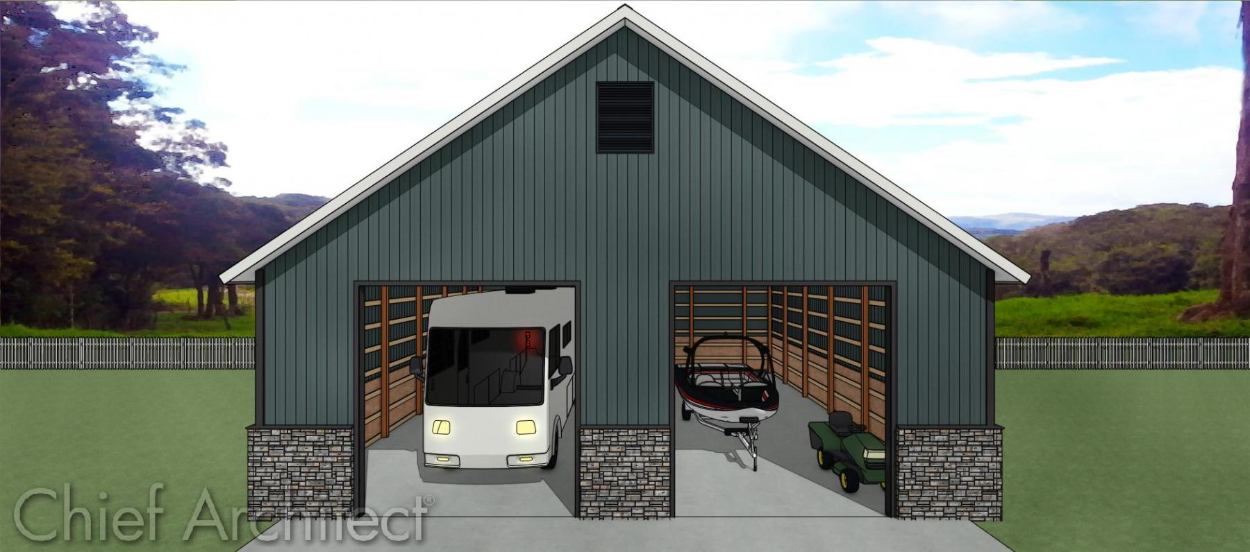 A post frame building designed in Chief Architect Premier.