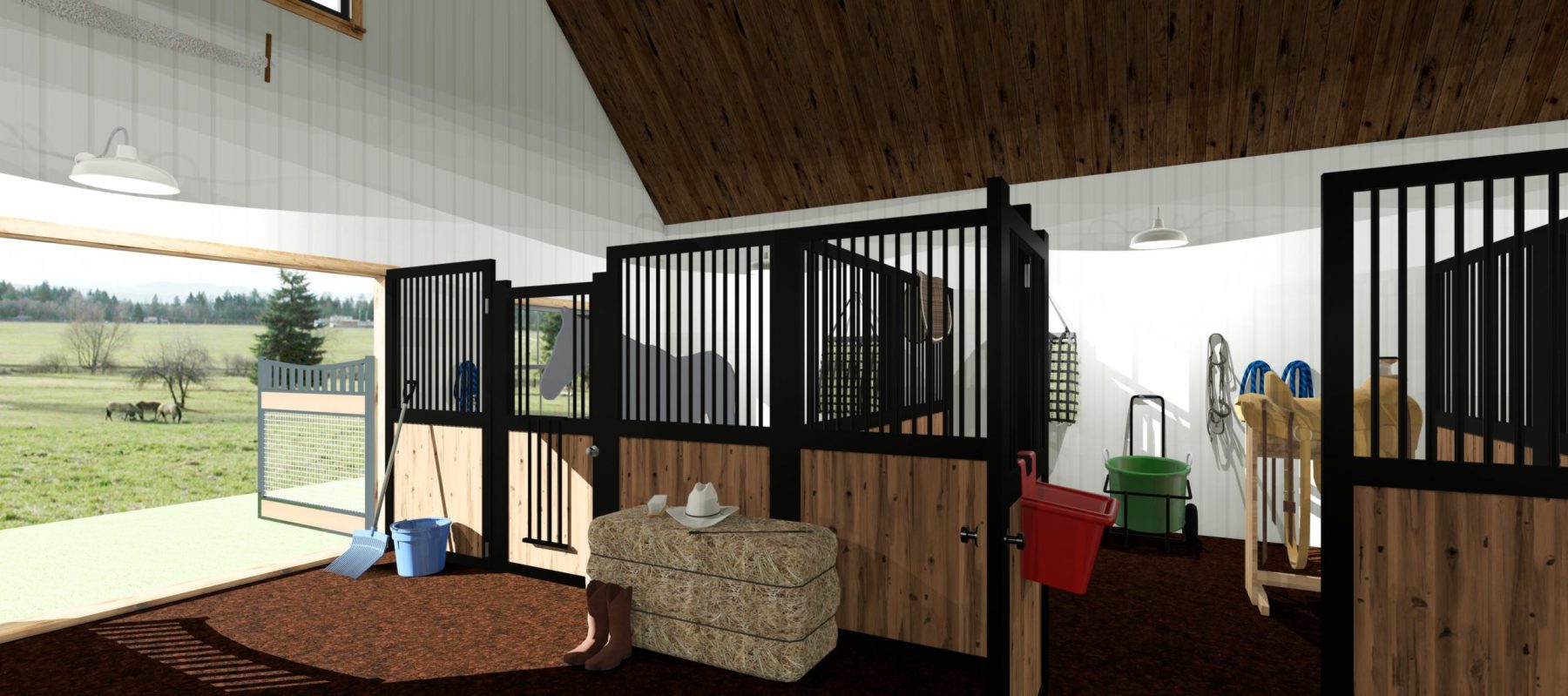A post frame building with the framing exposed designed in Chief Architect Premier.