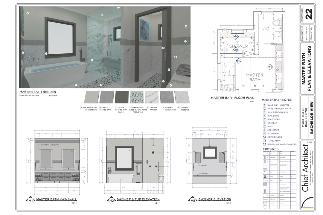 A remodeling project rendered in Chief Architect with a reference display showing what it will look like.