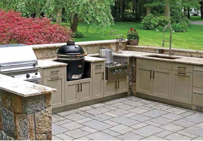 Enjoy a wide variety of outdoor kitchen cabinet combinations.